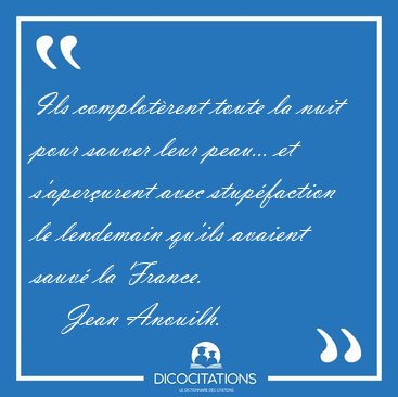 Ils complotèrent toute la nuit pour sauver leur peau... et s'aperçurent avec stupéfaction le lendemain qu'ils avaient sauvé la France.