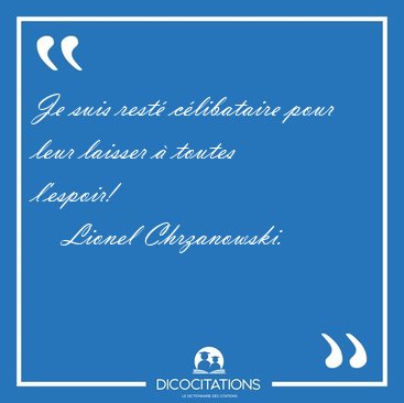 ![Je suis resté célibataire pour leur laisser à toutes [...] - Lionel Chrzanowski... Je suis resté célibataire pour leur laisser à toutes [...] - Lionel Chrzanowski...](/imagescitations/Je_suis_reste_celibataire_pour_leur_laisser_a_toutes_-_Lionel_Chrzanowski-41056.jpg)