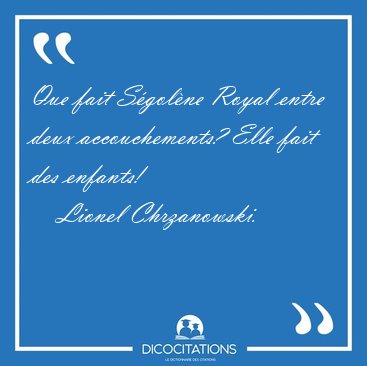![Que fait Ségolène Royal entre deux accouchements? Elle fait des [...] - Lionel Chrzanowski... Que fait Ségolène Royal entre deux accouchements? Elle fait des [...] - Lionel Chrzanowski...](/imagescitations/Que_fait_Segolene_Royal_entre_deux_accouchements_Elle_fait_des_-_Lionel_Chrzanowski-41073.jpg)
