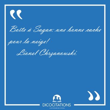 ![Boîte à Sagan: une bonne cache pour la [...] - Lionel Chrzanowski... Boîte à Sagan: une bonne cache pour la [...] - Lionel Chrzanowski...](/imagescitations/Boite_a_Sagan_une_bonne_cache_pour_la_-_Lionel_Chrzanowski-41115.jpg)