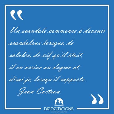![Un scandale commence à devenir scandaleux lorsque, de salubre, [...] - Jean Cocteau... Un scandale commence à devenir scandaleux lorsque, de salubre, [...] - Jean Cocteau...](/imagescitations/Un_scandale_commence_a_devenir_scandaleux_lorsque_de_salubre_-_Jean_Cocteau-4118.jpg)
