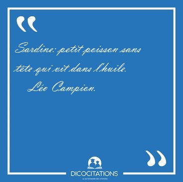 ![Sardine: petit poisson sans tête qui vit dans [...] - Léo Campion... Sardine: petit poisson sans tête qui vit dans [...] - Léo Campion...](/imagescitations/Sardine_petit_poisson_sans_tete_qui_vit_dans_-_Leo_Campion-42242.jpg)