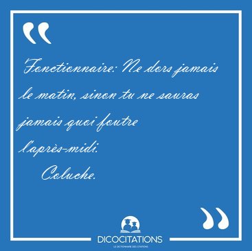 ![Fonctionnaire: Ne dors jamais le matin, sinon tu ne sauras [...] - Coluche... Fonctionnaire: Ne dors jamais le matin, sinon tu ne sauras [...] - Coluche...](/imagescitations/Fonctionnaire_Ne_dors_jamais_le_matin_sinon_tu_ne_sauras_-_Coluche-4285.jpg)