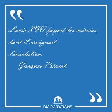 ![Louis XIV fuyait les miroirs, tant il craignait [...] - Jacques Prévert... Louis XIV fuyait les miroirs, tant il craignait [...] - Jacques Prévert...](/imagescitations/Louis_XIV_fuyait_les_miroirs_tant_il_craignait_-_Jacques_Prevert-42868.jpg)