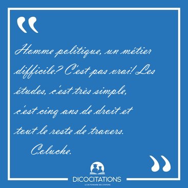 Homme politique, un métier difficile? C'est pas vrai! Les études, c'est très simple, c'est cinq ans de droit et tout le reste de travers.