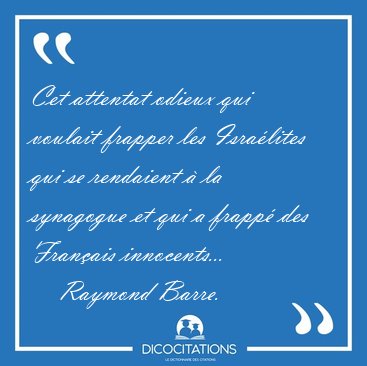 ![Cet attentat odieux qui voulait frapper les Israélites qui se [...] - Raymond Barre... Cet attentat odieux qui voulait frapper les Israélites qui se [...] - Raymond Barre...](/imagescitations/Cet_attentat_odieux_qui_voulait_frapper_les_Israelites_qui_se_-_Raymond_Barre-43423.jpg)