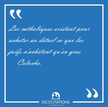 ![Les catholiques existent pour acheter au détail ce que les juifs [...] - Coluche... Les catholiques existent pour acheter au détail ce que les juifs [...] - Coluche...](/imagescitations/Les_catholiques_existent_pour_acheter_au_detail_ce_que_les_juifs_-_Coluche-4368.jpg)