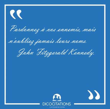 ![Pardonnez à vos ennemis, mais n'oubliez jamais leurs [...] - John Fitzgerald Kennedy... Pardonnez à vos ennemis, mais n'oubliez jamais leurs [...] - John Fitzgerald Kennedy...](/imagescitations/Pardonnez_a_vos_ennemis_mais_n_oubliez_jamais_leurs_-_John_Fitzgerald_Kennedy-44101.jpg)