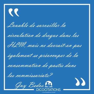 ![Louable de surveiller la circulation de drogue dans les HLM, [...] - Guy Bedos... Louable de surveiller la circulation de drogue dans les HLM, [...] - Guy Bedos...](/imagescitations/Louable_de_surveiller_la_circulation_de_drogue_dans_les_HLM_-_Guy_Bedos-44587.jpg)