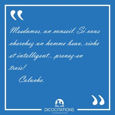 ![Mesdames, un conseil. Si vous cherchez un homme beau, riche et [...] - Coluche... Mesdames, un conseil. Si vous cherchez un homme beau, riche et [...] - Coluche...](/imagescitations/Mesdames_un_conseil_Si_vous_cherchez_un_homme_beau_riche_et_-_Coluche-45117.jpg)