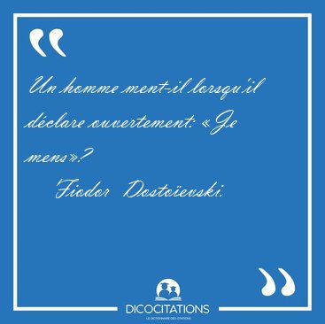 ![Un homme ment-il lorsqu'il déclare ouvertement: «Je [...] - Fiodor Dostoïevski... Un homme ment-il lorsqu'il déclare ouvertement: «Je [...] - Fiodor Dostoïevski...](/imagescitations/Un_homme_ment-il_lorsqu_il_declare_ouvertement_Je_-_Fiodor_Dostoievski-45601.jpg)