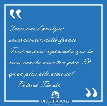 ![Trois ans d'analyse: soixante-dix mille francs. Tout ça pour [...] - Patrick Timsit... Trois ans d'analyse: soixante-dix mille francs. Tout ça pour [...] - Patrick Timsit...](/imagescitations/Trois_ans_d_analyse_soixante-dix_mille_francs_Tout_ca_pour_-_Patrick_Timsit-45977.jpg)