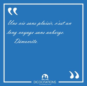 Une vie sans plaisir, c'est un long voyage sans auberge.