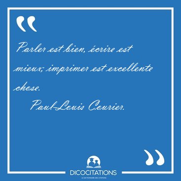 ![Parler est bien, écrire est mieux; imprimer est excellente [...] - Paul-Louis Courier... Parler est bien, écrire est mieux; imprimer est excellente [...] - Paul-Louis Courier...](/imagescitations/Parler_est_bien_ecrire_est_mieux_imprimer_est_excellente_-_Paul-Louis_Courier-4720.jpg)
