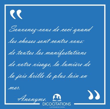 Souvenez-vous de ceci quand les choses sont contre vous: de toutes les manifestations de votre visage, la lumière de la joie brille le plus loin en mer.