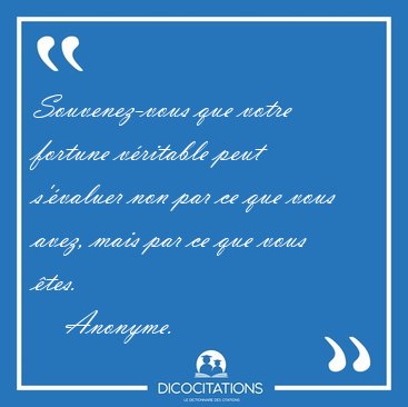 Souvenez-vous que votre fortune véritable peut s'évaluer non par ce que vous avez, mais par ce que vous êtes.