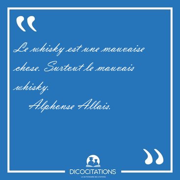 ![Le whisky est une mauvaise chose. Surtout le mauvais [...] - Alphonse Allais... Le whisky est une mauvaise chose. Surtout le mauvais [...] - Alphonse Allais...](/imagescitations/Le_whisky_est_une_mauvaise_chose_Surtout_le_mauvais_-_Alphonse_Allais-47609.jpg)