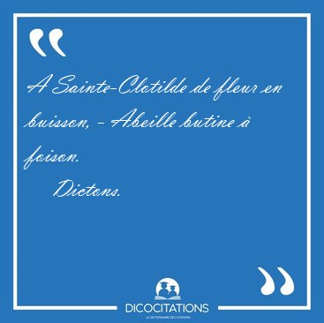 ![A Sainte-Clotilde de fleur en buisson, - Abeille butine à [...] - Dictons... A Sainte-Clotilde de fleur en buisson, - Abeille butine à [...] - Dictons...](/imagescitations/A_Sainte-Clotilde_de_fleur_en_buisson_-_Abeille_butine_a_-_Dictons-47660.jpg)