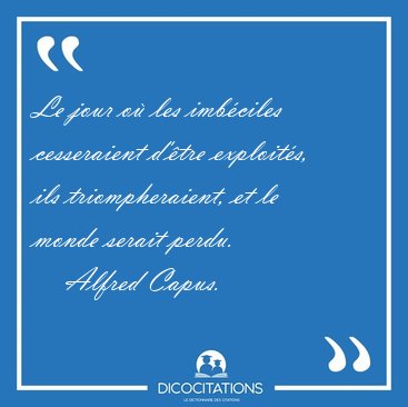 Le jour où les imbéciles cesseraient d'être exploités, ils triompheraient, et le monde serait perdu.