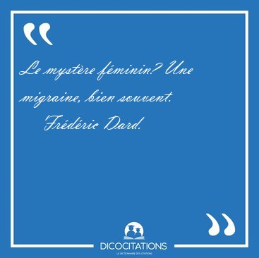 ![Le mystère féminin? Une migraine, bien [...] - Frédéric Dard... Le mystère féminin? Une migraine, bien [...] - Frédéric Dard...](/imagescitations/Le_mystere_feminin_Une_migraine_bien_-_Frederic_Dard-47965.jpg)