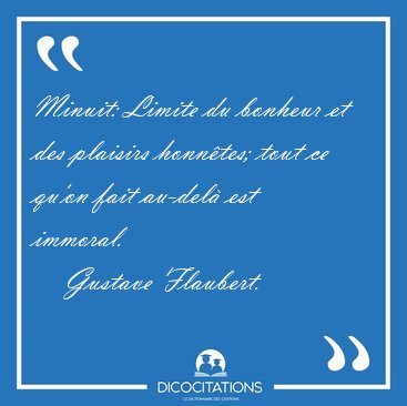 ![Minuit: Limite du bonheur et des plaisirs honnêtes; tout ce [...] - Gustave Flaubert... Minuit: Limite du bonheur et des plaisirs honnêtes; tout ce [...] - Gustave Flaubert...](/imagescitations/Minuit_Limite_du_bonheur_et_des_plaisirs_honnetes_tout_ce_-_Gustave_Flaubert-48144.jpg)