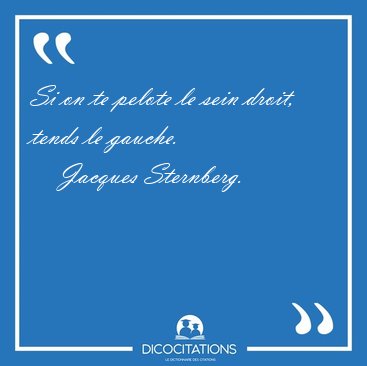 ![Si on te pelote le sein droit, tends le [...] - Jacques Sternberg... Si on te pelote le sein droit, tends le [...] - Jacques Sternberg...](/imagescitations/Si_on_te_pelote_le_sein_droit_tends_le_-_Jacques_Sternberg-48627.jpg)