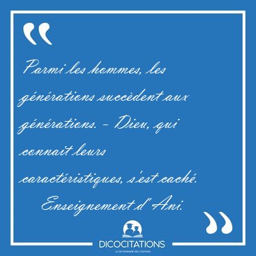 ![Parmi les hommes, les générations succèdent aux générations. - [...] - Enseignement d' Ani... Parmi les hommes, les générations succèdent aux générations. - [...] - Enseignement d' Ani...](/imagescitations/Parmi_les_hommes_les_generations_succedent_aux_generations_-_-_Enseignement_d_Ani-49163.jpg)