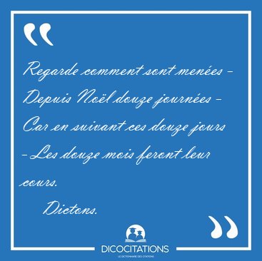 ![Regarde comment sont menées - Depuis Noël douze journées - Car [...] - Dictons... Regarde comment sont menées - Depuis Noël douze journées - Car [...] - Dictons...](/imagescitations/Regarde_comment_sont_menees_-_Depuis_Noel_douze_journees_-_Car_-_Dictons-49200.jpg)