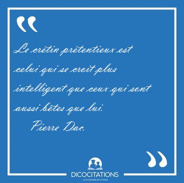![Le crétin prétentieux est celui qui se croit plus intelligent [...] - Pierre Dac... Le crétin prétentieux est celui qui se croit plus intelligent [...] - Pierre Dac...](/imagescitations/Le_cretin_pretentieux_est_celui_qui_se_croit_plus_intelligent_-_Pierre_Dac-4928.jpg)