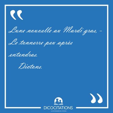 ![Lune nouvelle au Mardi gras, - Le tonnerre peu après [...] - Dictons... Lune nouvelle au Mardi gras, - Le tonnerre peu après [...] - Dictons...](/imagescitations/Lune_nouvelle_au_Mardi_gras_-_Le_tonnerre_peu_apres_-_Dictons-49384.jpg)