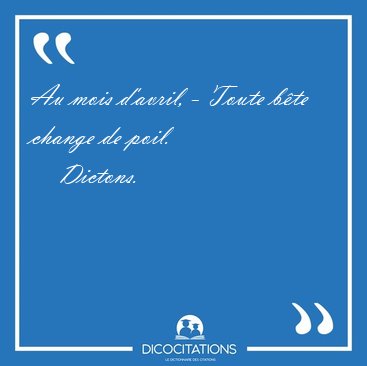![Au mois d'avril, - Toute bête change de [...] - Dictons... Au mois d'avril, - Toute bête change de [...] - Dictons...](/imagescitations/Au_mois_d_avril_-_Toute_bete_change_de_-_Dictons-49483.jpg)