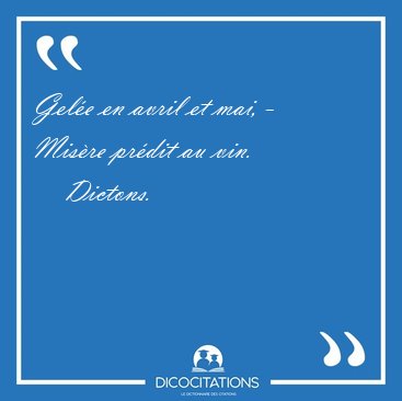 ![Gelée en avril et mai, - Misère prédit au [...] - Dictons... Gelée en avril et mai, - Misère prédit au [...] - Dictons...](/imagescitations/Gelee_en_avril_et_mai_-_Misere_predit_au_-_Dictons-49498.jpg)