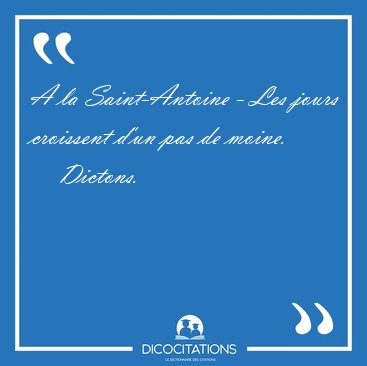 ![A la Saint-Antoine - Les jours croissent d'un pas de [...] - Dictons... A la Saint-Antoine - Les jours croissent d'un pas de [...] - Dictons...](/imagescitations/A_la_Saint-Antoine_-_Les_jours_croissent_d_un_pas_de_-_Dictons-49633.jpg)