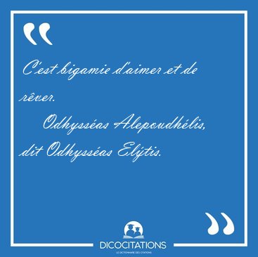 ![C'est bigamie d'aimer et de [...] - Odhysséas Alepoudhélis, dit Odhysséas Elýtis... C'est bigamie d'aimer et de [...] - Odhysséas Alepoudhélis, dit Odhysséas Elýtis...](/imagescitations/C_est_bigamie_d_aimer_et_de_-_Odhysseas_Alepoudhelis_dit_Odhysseas_Elytis-49749.jpg)