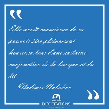 Elle avait conscience de ne pouvoir être pleinement heureuse hors d'une certaine conjonction de la banque et du lit.