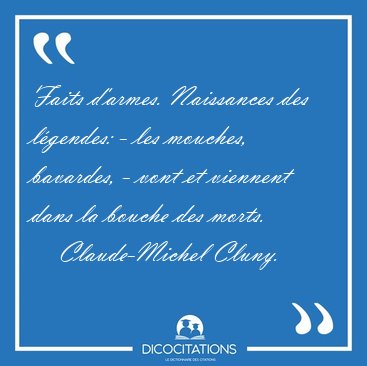 Faits d'armes. Naissances des légendes: - les mouches, bavardes, - vont et viennent dans la bouche des morts.