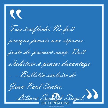 Très irrefléchi. Ne fait presque jamais une réponse juste du premier coup. Doit s'habituer à penser davantage. - - Bulletin scolaire de Jean-Paul Sartre.