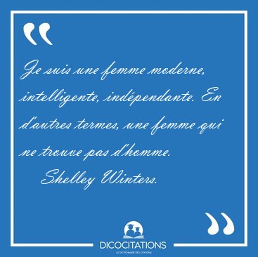 ![Je suis une femme moderne, intelligente, indépendante. En [...] - Shelley Winters... Je suis une femme moderne, intelligente, indépendante. En [...] - Shelley Winters...](/imagescitations/Je_suis_une_femme_moderne_intelligente_independante_En_-_Shelley_Winters-50793.jpg)