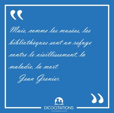 ![Mais, comme les musées, les bibliothèques sont un refuge contre [...] - Jean Grenier... Mais, comme les musées, les bibliothèques sont un refuge contre [...] - Jean Grenier...](/imagescitations/Mais_comme_les_musees_les_bibliotheques_sont_un_refuge_contre_-_Jean_Grenier-50926.jpg)