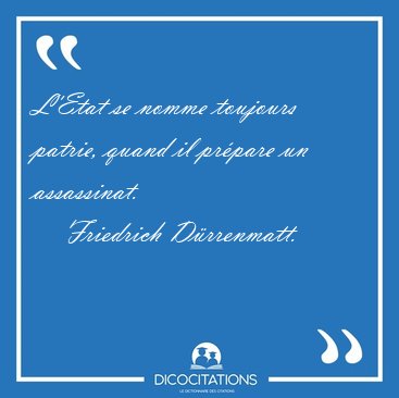 ![L'Etat se nomme toujours patrie, quand il prépare un [...] - Friedrich Dürrenmatt... L'Etat se nomme toujours patrie, quand il prépare un [...] - Friedrich Dürrenmatt...](/imagescitations/L_Etat_se_nomme_toujours_patrie_quand_il_prepare_un_-_Friedrich_Durrenmatt-50983.jpg)