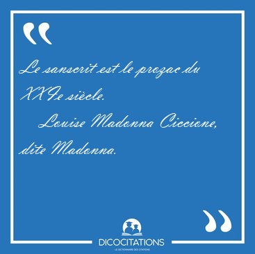 ![Le sanscrit est le prozac du XXIe [...] - Louise Madonna Ciccione, dite Madonna... Le sanscrit est le prozac du XXIe [...] - Louise Madonna Ciccione, dite Madonna...](/imagescitations/Le_sanscrit_est_le_prozac_du_XXIe_-_Louise_Madonna_Ciccione_dite_Madonna-51543.jpg)