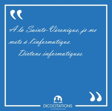 ![A la Sainte-Véronique, je me mets à [...] - Dictons informatiques... A la Sainte-Véronique, je me mets à [...] - Dictons informatiques...](/imagescitations/A_la_Sainte-Veronique_je_me_mets_a_-_Dictons_informatiques-51549.jpg)