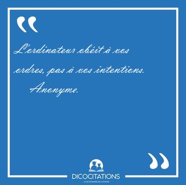 ![L'ordinateur obéit à vos ordres, pas à vos [...] - Anonyme... L'ordinateur obéit à vos ordres, pas à vos [...] - Anonyme...](/imagescitations/L_ordinateur_obeit_a_vos_ordres_pas_a_vos_-_Anonyme-516.jpg)