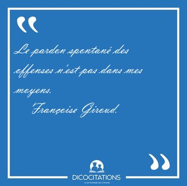 Le pardon spontané des offenses n'est pas dans mes moyens.