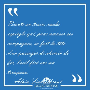 ![Broute en train: vache espiègle qui, pour amuser ses compagnes, [...] - Alain Finkielkraut... Broute en train: vache espiègle qui, pour amuser ses compagnes, [...] - Alain Finkielkraut...](/imagescitations/Broute_en_train_vache_espiegle_qui_pour_amuser_ses_compagnes_-_Alain_Finkielkraut-52178.jpg)