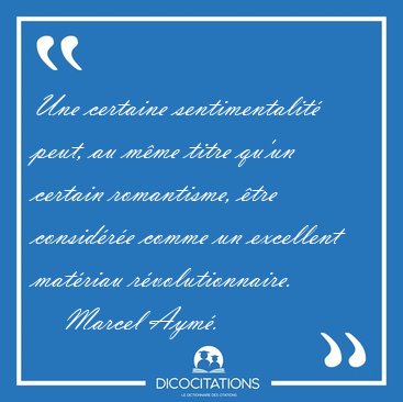 ![Une certaine sentimentalité peut, au même titre qu'un certain [...] - Marcel Aymé... Une certaine sentimentalité peut, au même titre qu'un certain [...] - Marcel Aymé...](/imagescitations/Une_certaine_sentimentalite_peut_au_meme_titre_qu_un_certain_-_Marcel_Ayme-52399.jpg)