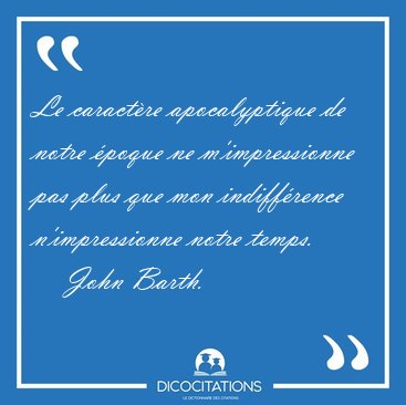 ![Le caractère apocalyptique de notre époque ne m'impressionne pas [...] - John Barth... Le caractère apocalyptique de notre époque ne m'impressionne pas [...] - John Barth...](/imagescitations/Le_caractere_apocalyptique_de_notre_epoque_ne_m_impressionne_pas_-_John_Barth-52683.jpg)