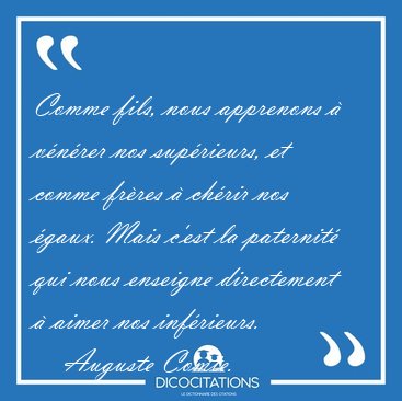 ![Comme fils, nous apprenons à vénérer nos supérieurs, et comme [...] - Auguste Comte... Comme fils, nous apprenons à vénérer nos supérieurs, et comme [...] - Auguste Comte...](/imagescitations/Comme_fils_nous_apprenons_a_venerer_nos_superieurs_et_comme_-_Auguste_Comte-53007.jpg)