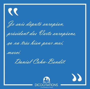 ![Je suis député européen, président des Verts européens, ça va [...] - Daniel Cohn-Bendit... Je suis député européen, président des Verts européens, ça va [...] - Daniel Cohn-Bendit...](/imagescitations/Je_suis_depute_europeen_president_des_Verts_europeens_ca_va_-_Daniel_Cohn-Bendit-53236.jpg)