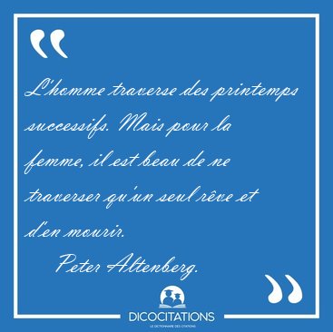 ![L'homme traverse des printemps successifs. Mais pour la femme, [...] - Peter Altenberg... L'homme traverse des printemps successifs. Mais pour la femme, [...] - Peter Altenberg...](/imagescitations/L_homme_traverse_des_printemps_successifs_Mais_pour_la_femme_-_Peter_Altenberg-53616.jpg)